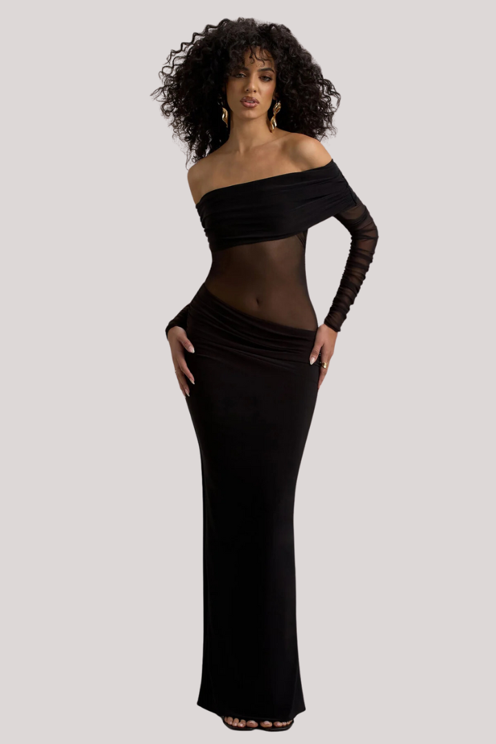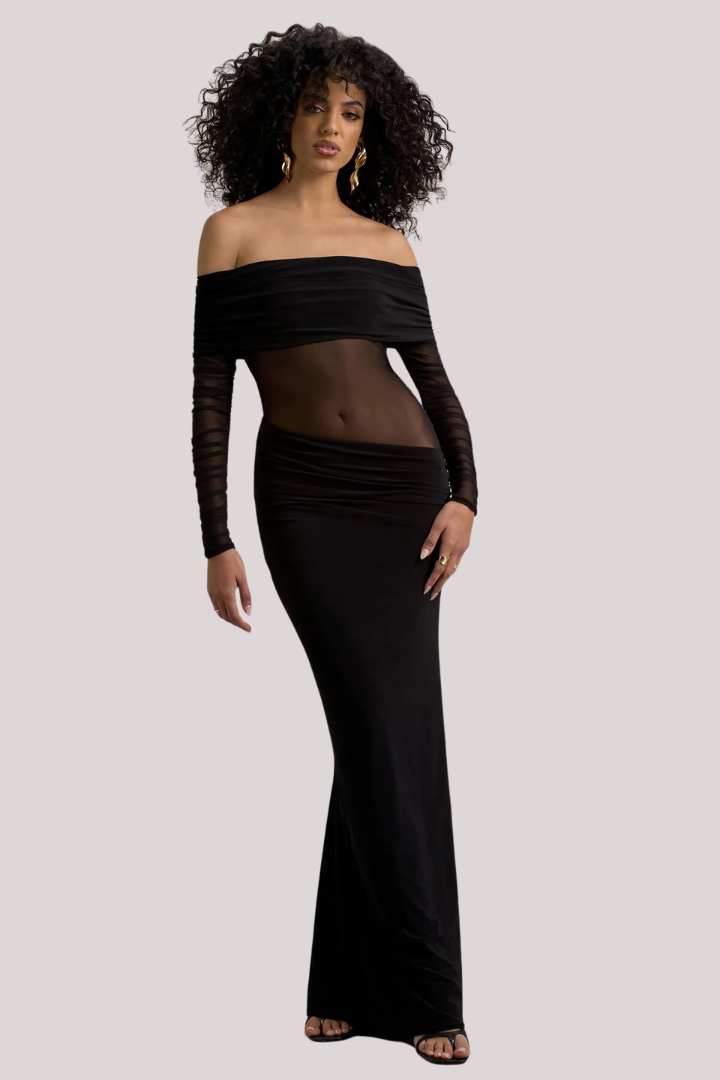 Belamour Black Maxi Dress Em promoção